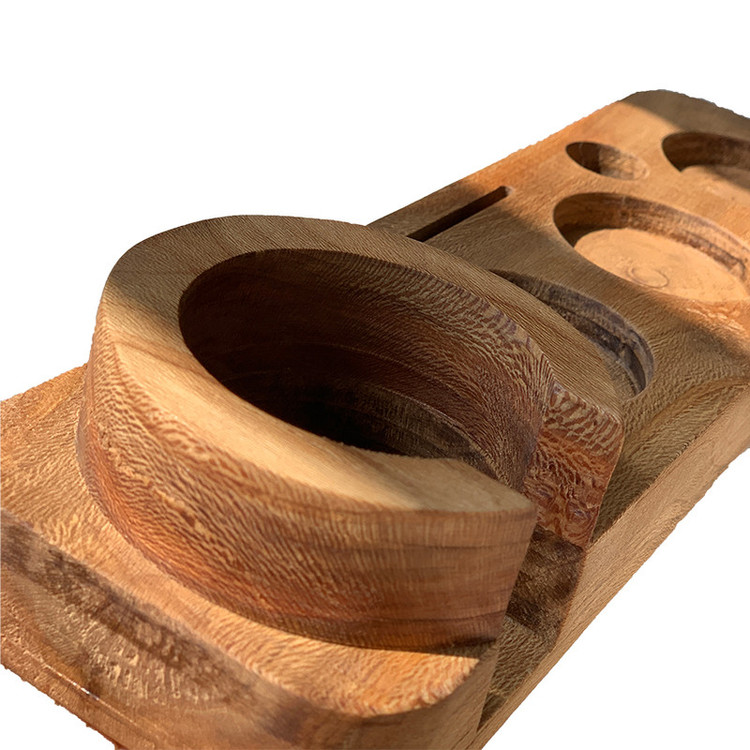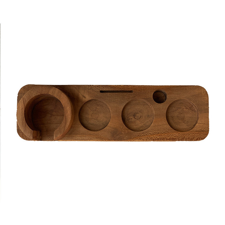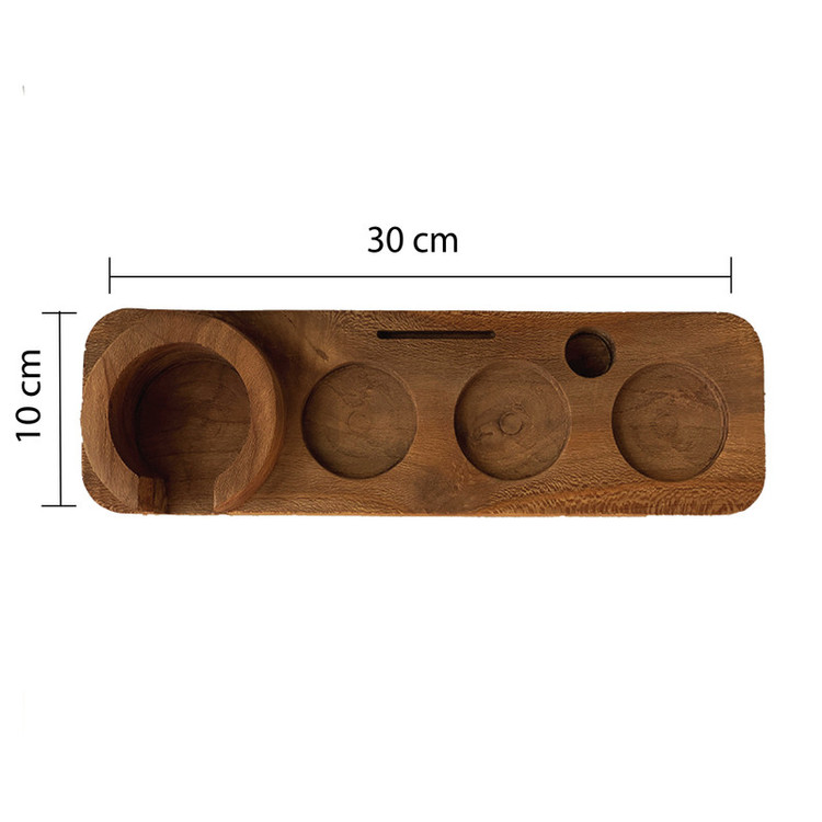 استند پرتافیلتر چوب چنار یک انتخاب حرفهای و خاص برای باریستاهایی است که به نظم، زیبایی و کیفیت اهمیت میدهند. این محصول با طراحی مهندسیشده و ظاهری مینیمال، امکان سازماندهی کامل ابزارهای ضروری تهیه قهوه را فراهم میکند. در قسمت چپ استند، جایگاه U شکل مخصوص دسته پرتافیلتر سایز 51 طراحی شده که بهصورت دقیق ابزار را در موقعیت ثابت نگه میدارد. در کنار آن، چهار حفره با قطر 3 سانتیمتر تعبیه شده که بهصورت چندمنظوره قابل استفاده هستند: برای نگهداری تمپر، لولر، پاک اسکرین و فرچه تمیزکننده. همچنین یک شیار باریک جهت قراردادن استیرر یا کارتهای اندازهگیری نیز روی بدنه قرار دارد. این استند ضمن افزایش بهرهوری در فرآیند تهیه قهوه، به میز باریستا ظاهری حرفهای و چشمنواز میدهد. مناسب برای باریستاهای خانگی، کافیشاپها و هر کسی که برای ابزار کار خود ارزش قائل است.