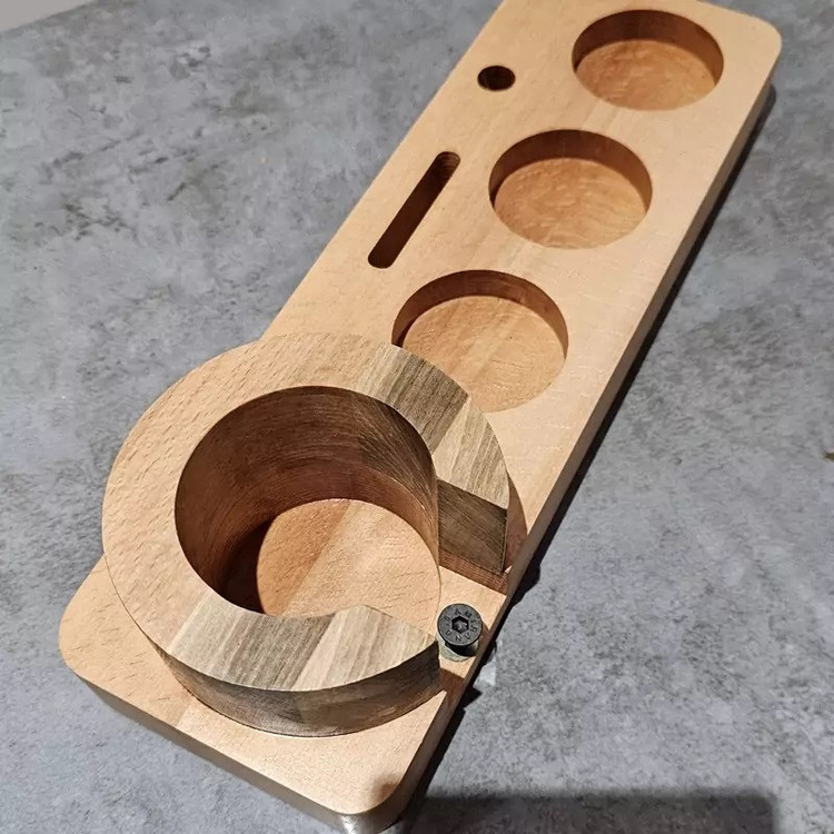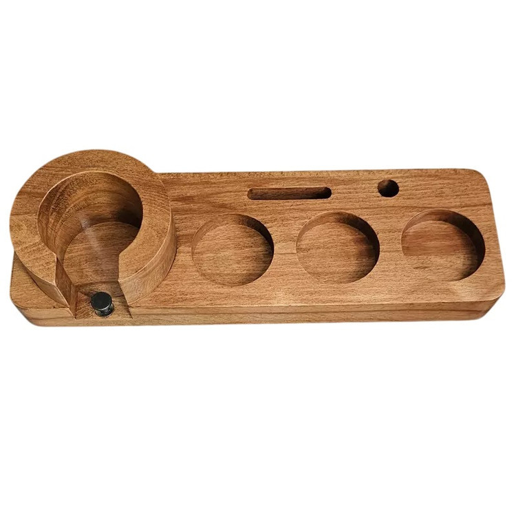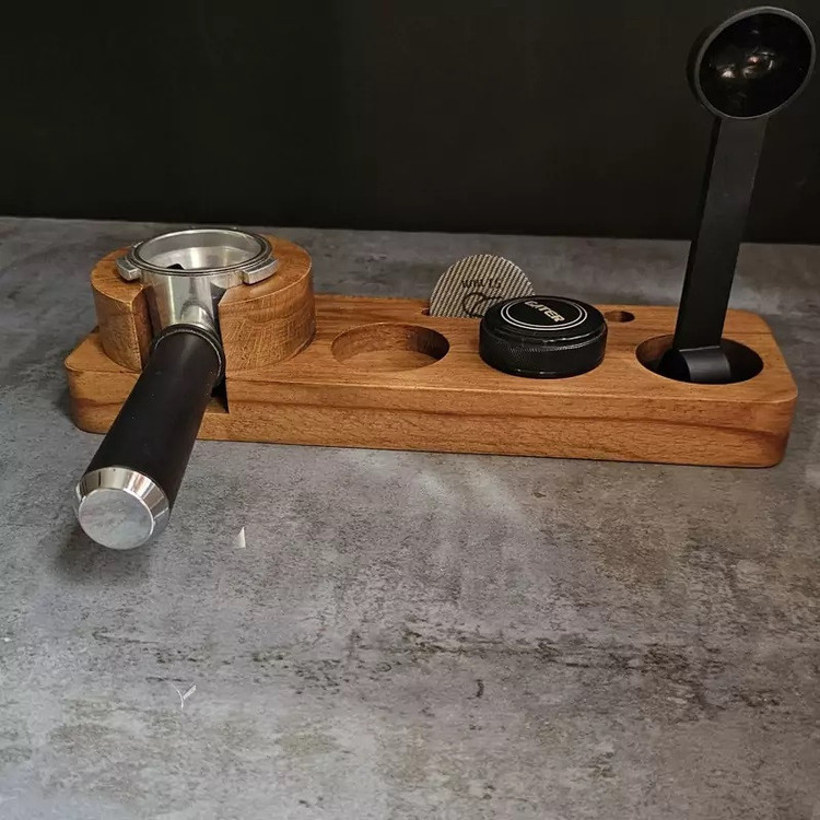 استند پرتافیلتر چوبی سایز 51 تمام لوازم کنار دستگاه اسپرسوساز اعم از پرتافیلتر، نیدل، تمپر، لولر، فانل، پاک اسکرین و قلم آرت رو میتونید روی این استند قرار بدهید