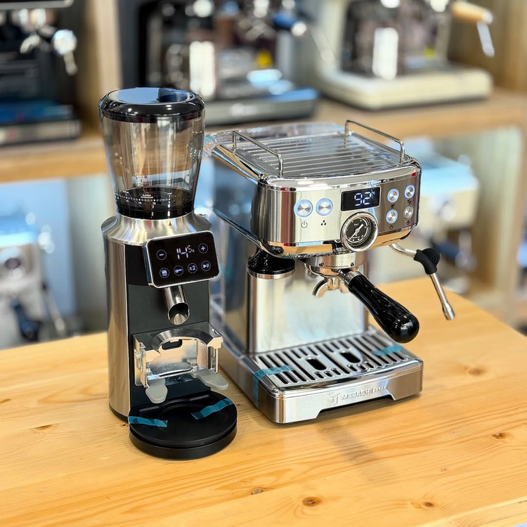 ست اسپرسوساز مباشی 2110 با آسیاب مباشی 2295. ترکیب این دو دستگاه باهم یک ست نیمه صنعتی شاهکار رو تشکیل میدن.