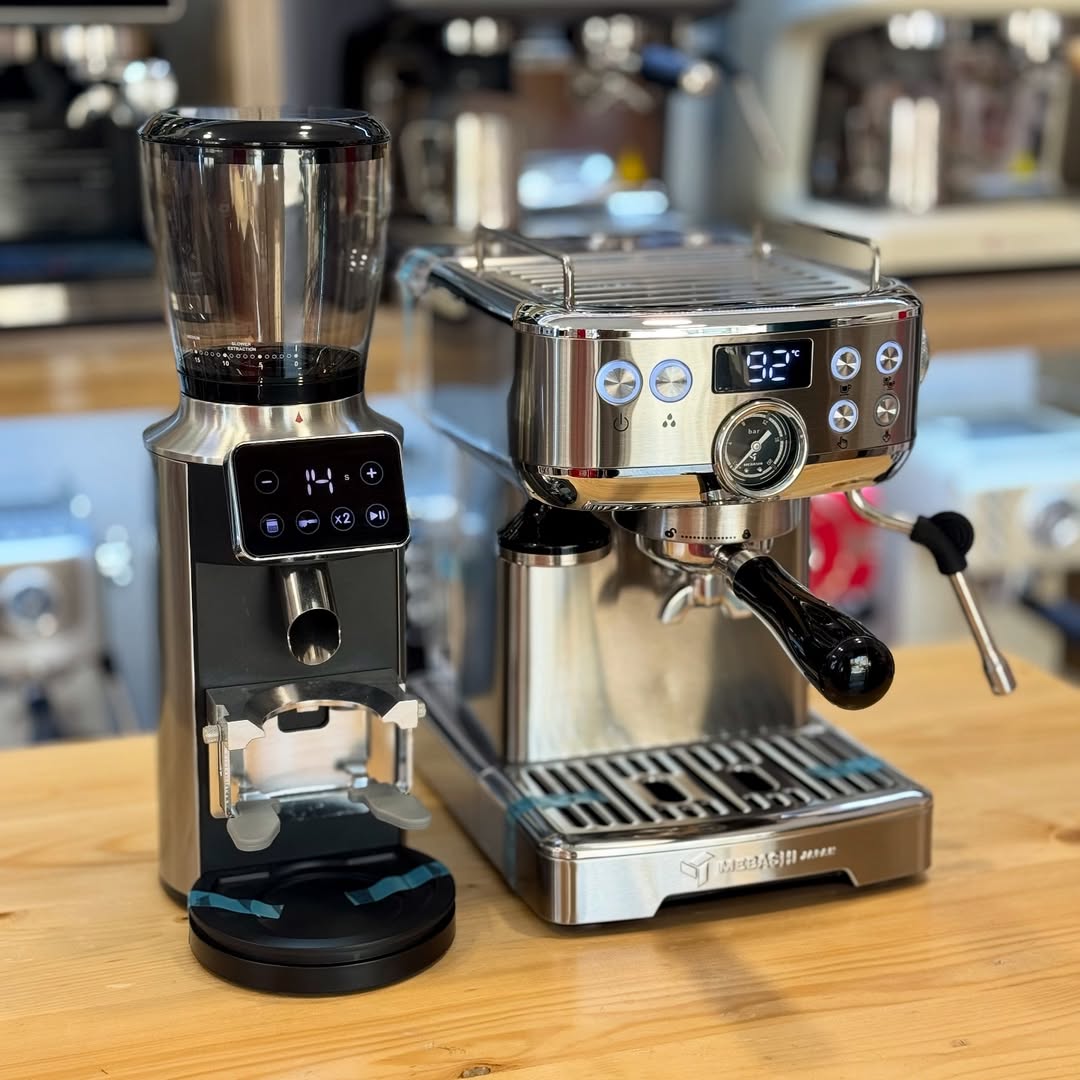 ست اسپرسوساز مباشی 2110 با آسیاب مباشی 2295. ترکیب این دو دستگاه باهم یک ست نیمه صنعتی شاهکار رو تشکیل میدن.
