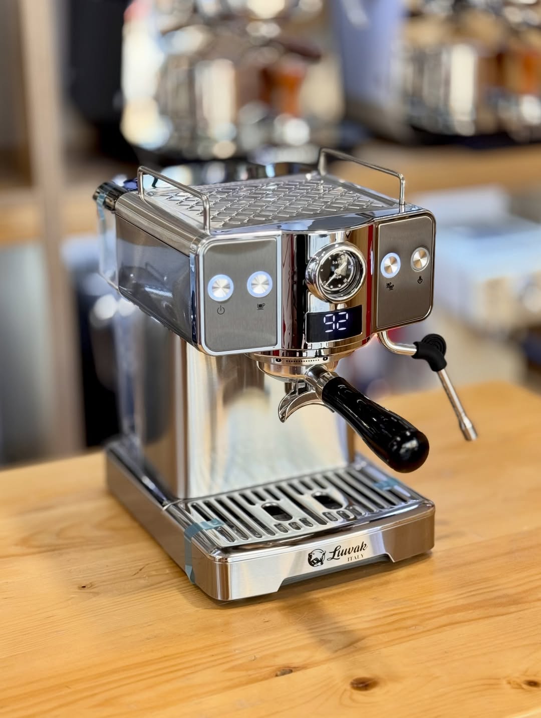 اسپرسوساز نیمه صنعتی لواک مجهز به دودعدد پرتافیلتر سایز ۵۸ و سایر ویژگیها و امکانات دستگاه شامل نمایش وضعیت چراغ، نشانگر فشار بخار، حالت آماده به کار، سیستم کاپوچینو ساز و سیستم ایمنی.